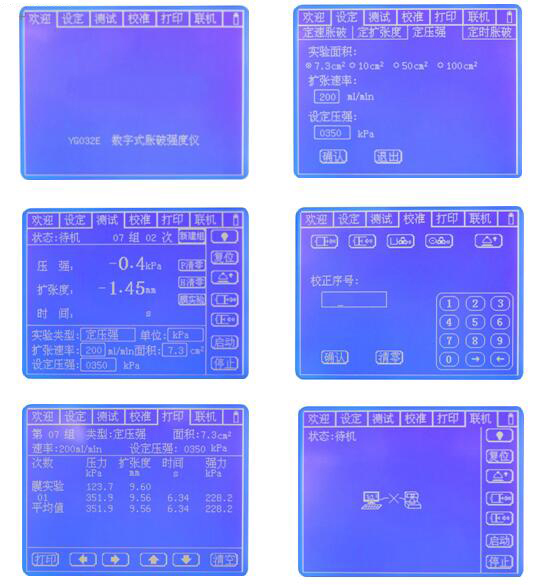 7、測試方法:定速脹破、定壓力、定擴(kuò)張度、定時(shí)四種測試方式