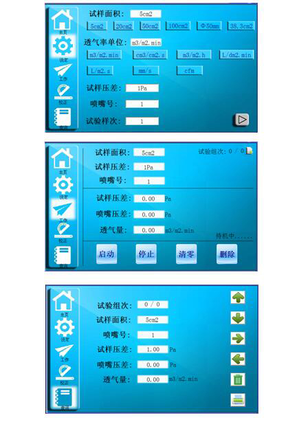 3、內(nèi)置7種測(cè)試單位mm/s、m3/m2.min、cm3/cm2.s、m3/m2.h、cfm、L/dm2.min、L/m2.s,
